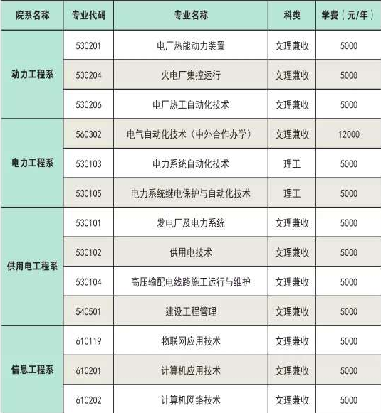 2020年江西电力职业技术学院电厂热能动力装置、火电厂集控运行、电厂热工自动化技术、电力系统自动化技术、发电厂及电厂系统、供用电技术、计算机网络技术专业的学费为5000元/年。