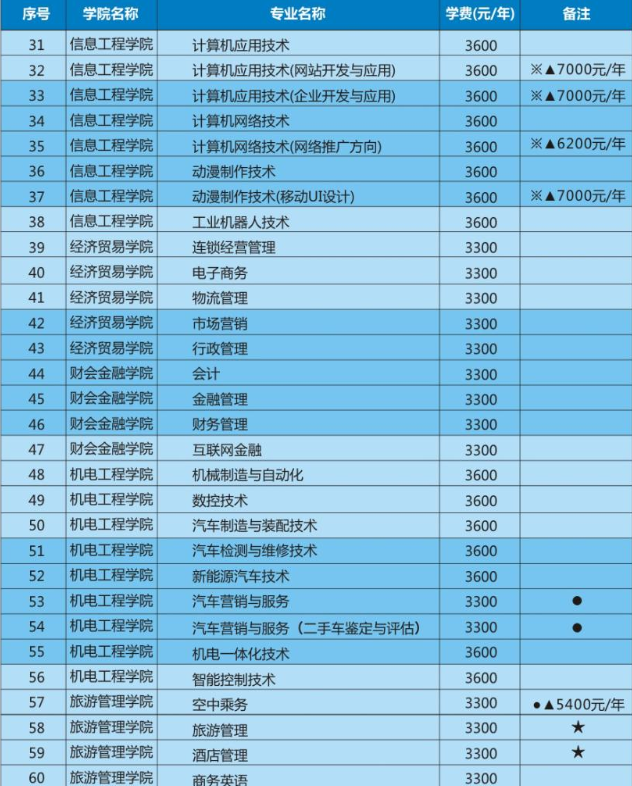 2020年河南农业职业学院各专业收费标准:收费标准执行河南省物价部门统一核定的标准。理工类专业学费3600元/年,文科类专业学费3300元/年;住宿费400元/(年·生)和800元/(年·生)两个标准。收费标准如遇河南省收费政策调整,按新政策执行。