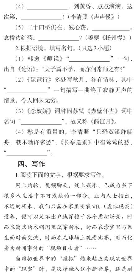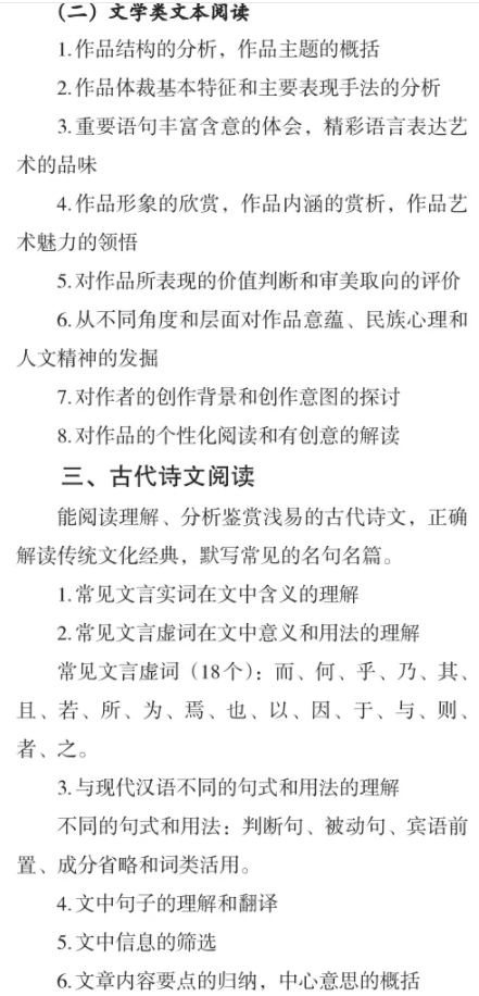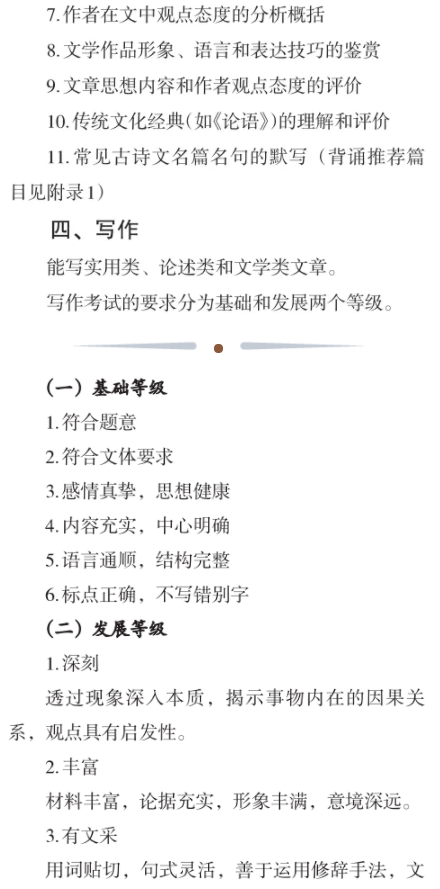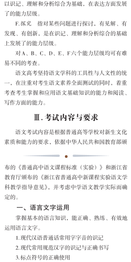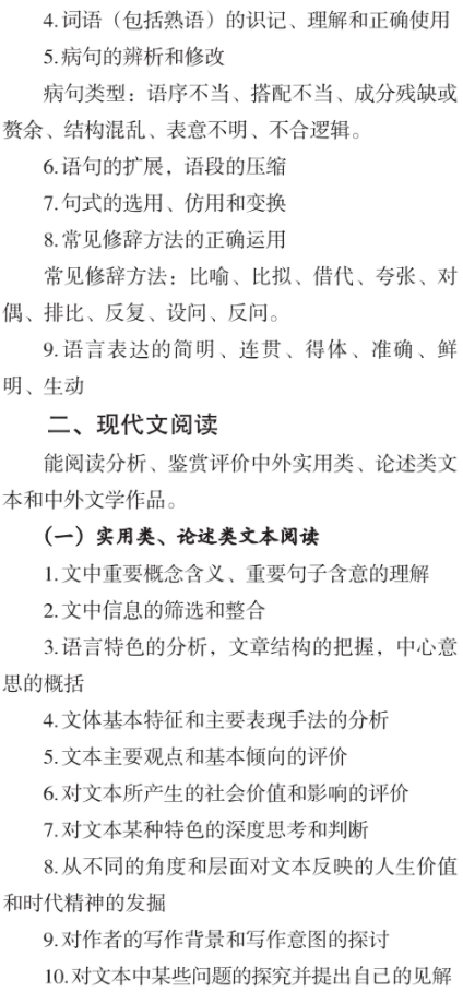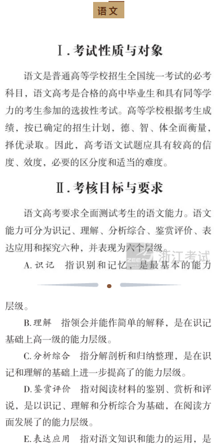 2021浙江高考语文大纲