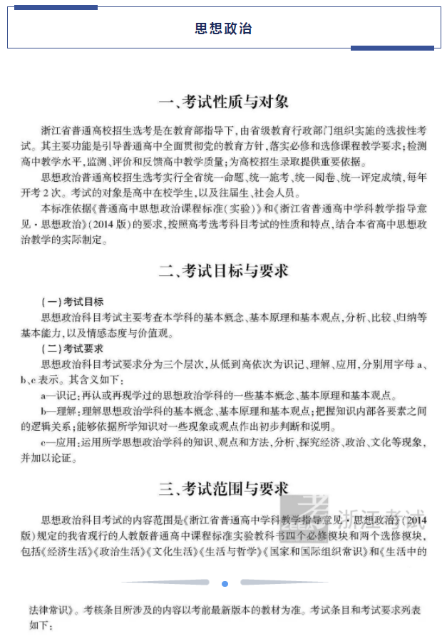 2021浙江高考政治考试说明及大纲 考试范围是什么