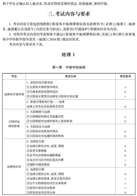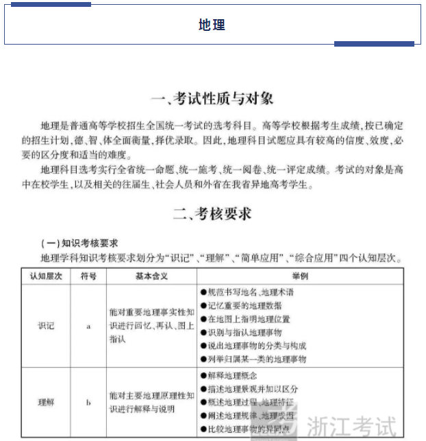 2021浙江高考地理考试说明及大纲 考试范围是什么