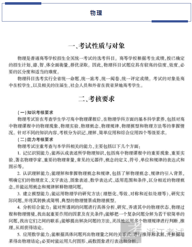 2021浙江高考物理考试说明及大纲 考试范围是什么