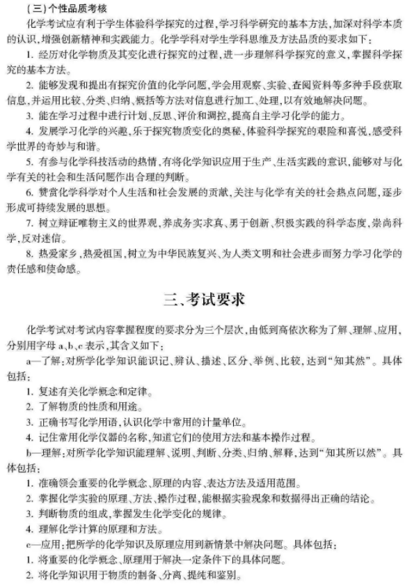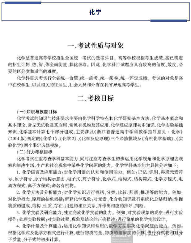 2021浙江高考化学考试说明及大纲 考试范围是什么