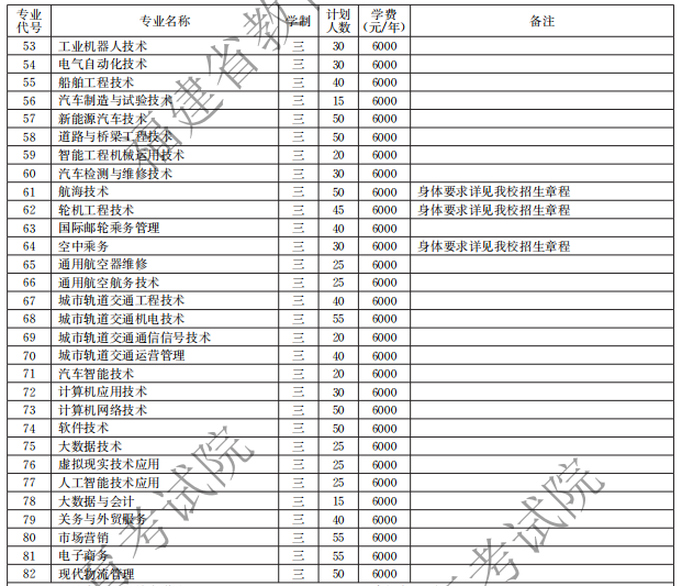 福建船政交通职业学院2021高职分类招生计划