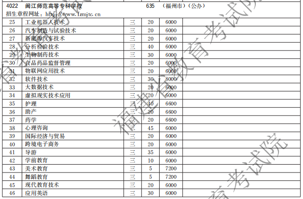 闽江师范高等专科学校2021高职分类招生计划