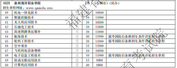 泉州海洋职业学院2021高职分类招生计划 有哪些专业