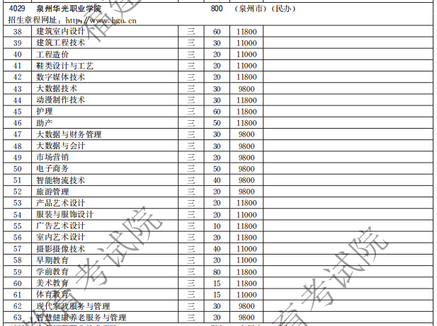 泉州华光职业学院2021高职分类招生计划
