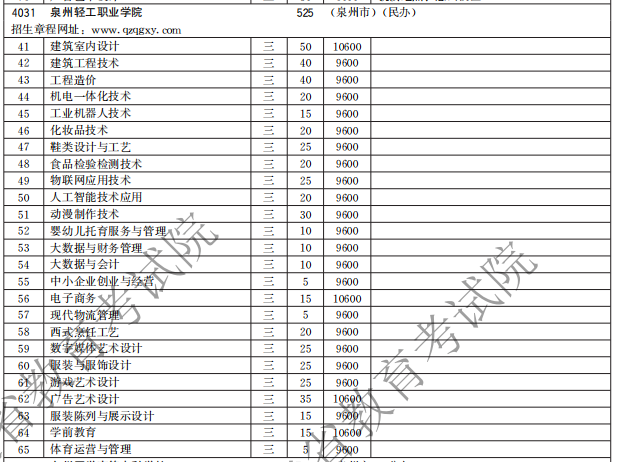 泉州轻工职业学院2021高职分类招生计划