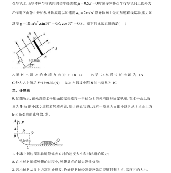 山西三晋名校联考2024-2025学年高三十月联考物理试题及答案