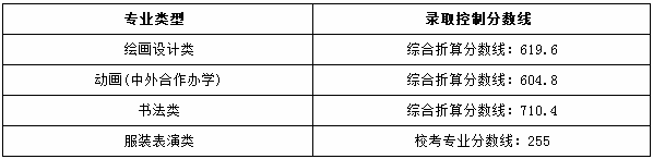 经研究决定,湖北美术学院2020年普通本科招生湖北省录取控制分数线如下: