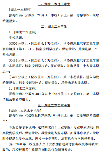 湖北汽车工业学院湖北2020年预估分数线