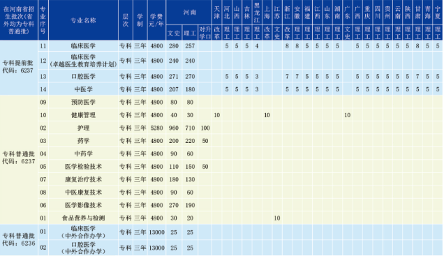 学费数据来源:漯河医学高等专科学校2020年分省分专业招生计划(https://www.lhmc.edu.cn/zs/info/1084/1809.htm)