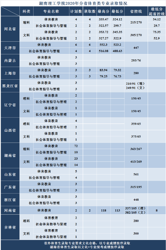 2020湖南理工学院体育类提前批录取分数线