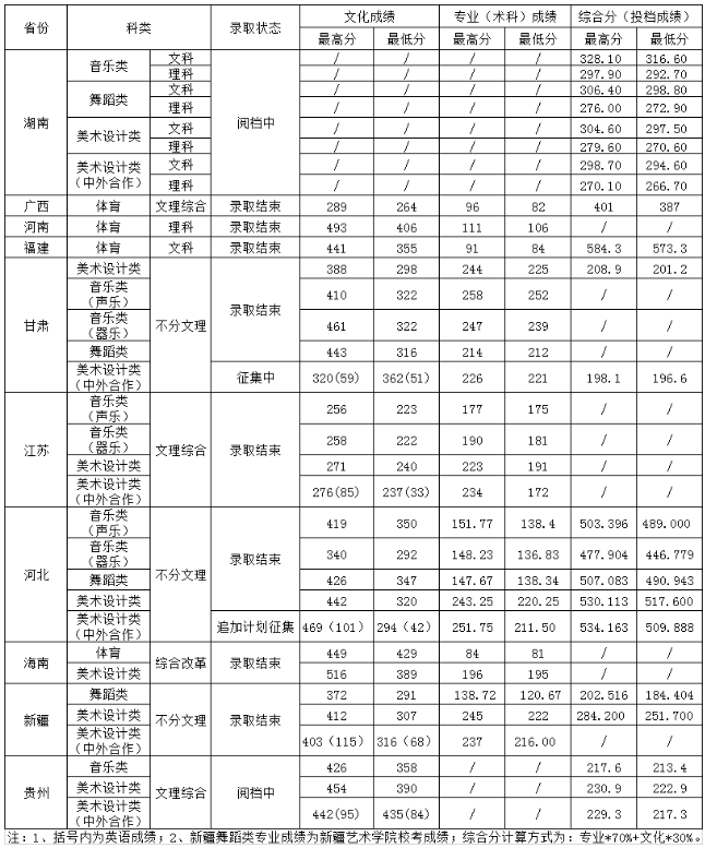 艺体类录取分数线