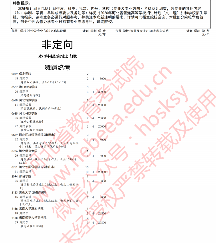 2020年河北高考本科提前批B段征集志愿招生计划(舞蹈) 时间:2020-08-13 15:27 招生计划 河北省教育考试院本科提前批B段征集志愿已经开始填报,下面小编为大家总结整理了本次征集志愿的招生计划,供大家参考。河北2020本科提前批B段征集志愿招生计划(舞蹈)