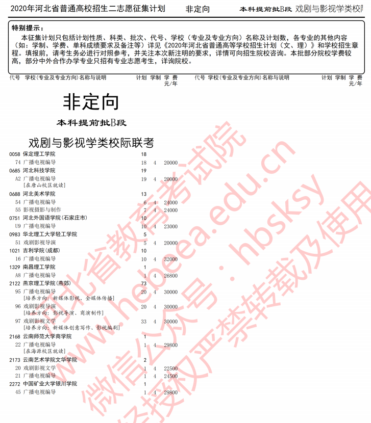 2020年河北高考本科提前批B段征集志愿招生计划(戏剧影视) 时间:2020-08-13 15:38 招生计划 河北省教育考试院本科提前批B段征集志愿已经开始填报,下面小编为大家总结整理了本次征集志愿的招生计划,供大家参考。河北2020本科提前批B段征集志愿招生计划(戏剧影视)