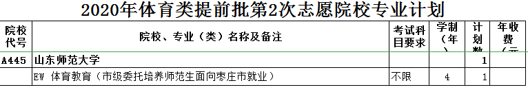 2020年山东高考本科提前批体育类征集志愿招生计划 时间:2020-08-13 15:56 招生计划 山东省高考本科提前批征集志愿已经开始填报,本次征集志愿的填报时间为8月13日上午9时至下午6时。下面小编为大家总结整理了本次征集志愿的招生计划,请各位考生抓紧时间填报。山东2020本科提前批体育类征集志愿招生计划