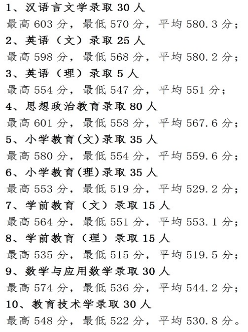 宁夏师范学院2020年招生录取信息公告发布,汉语言文学录取最高分603,最低分570;思想政治教育录取最高分601分,最低分558分。