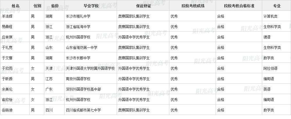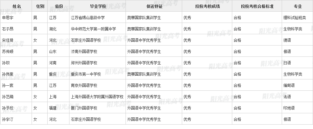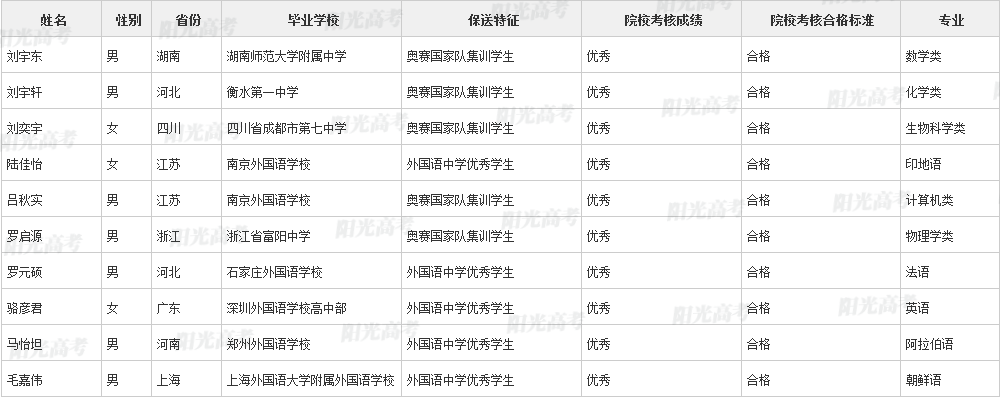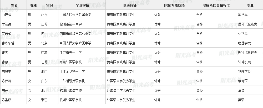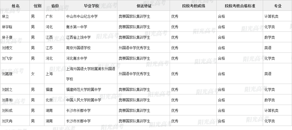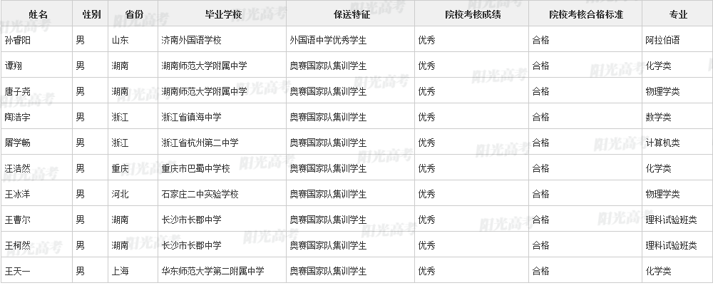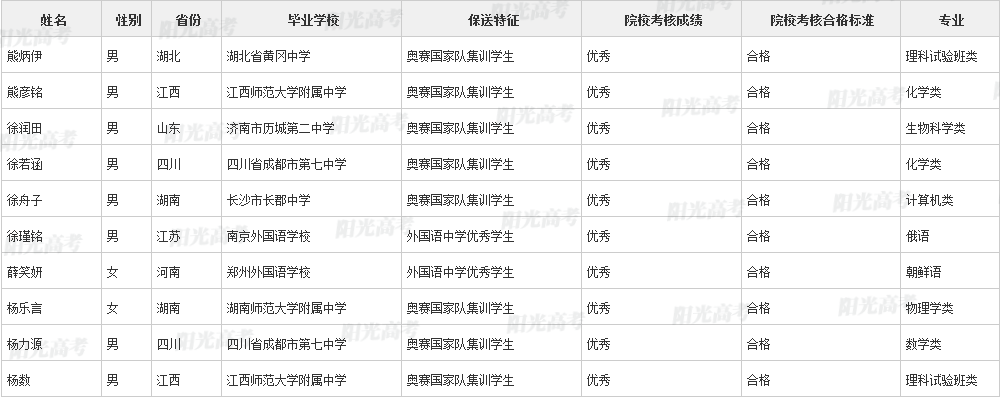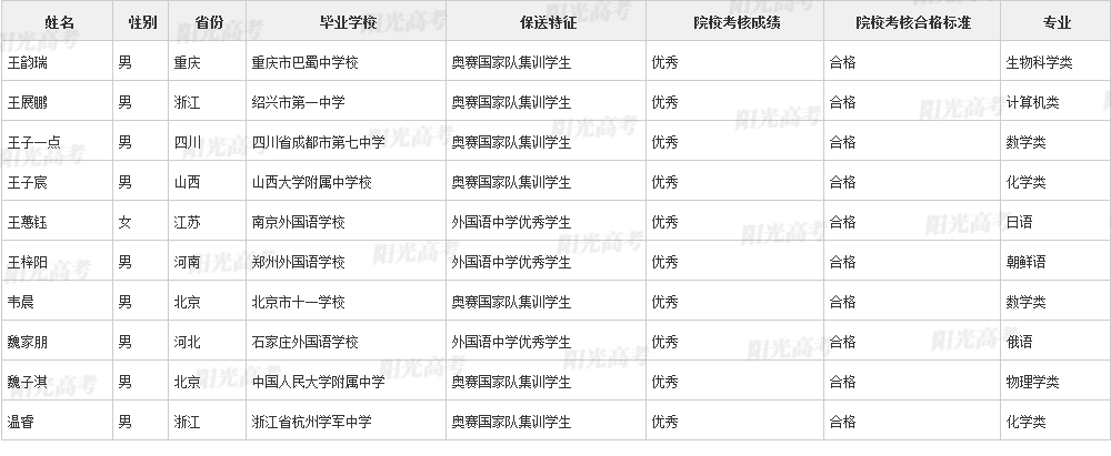北京大学2021年保送生拟录取名单