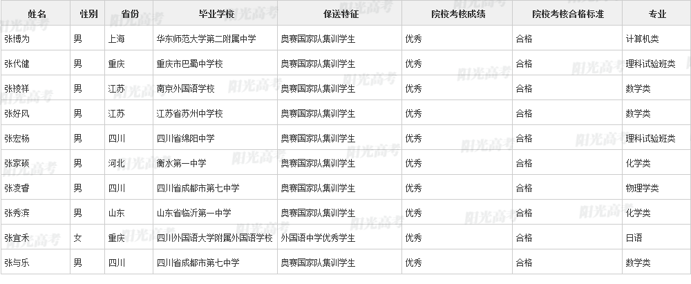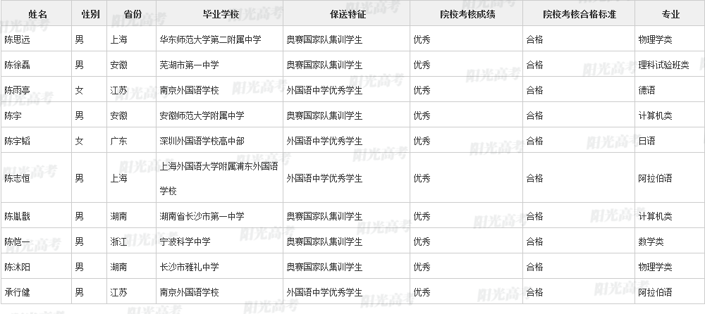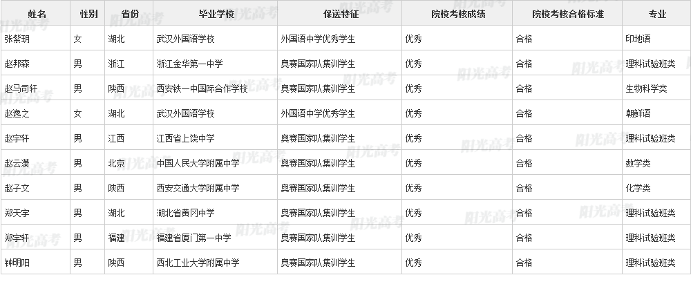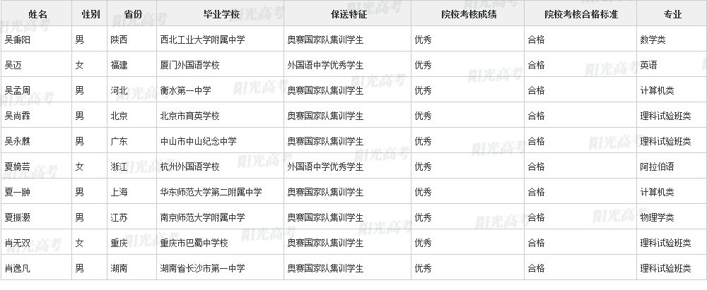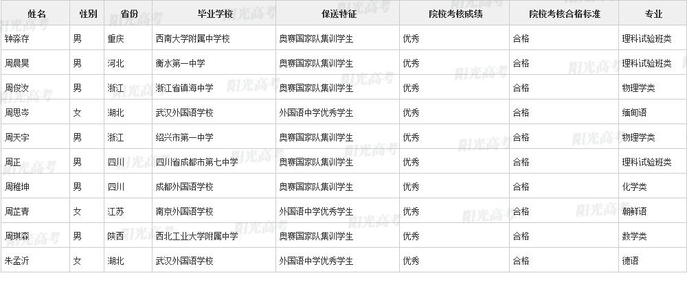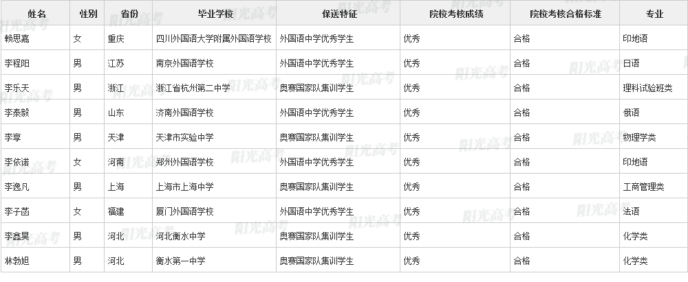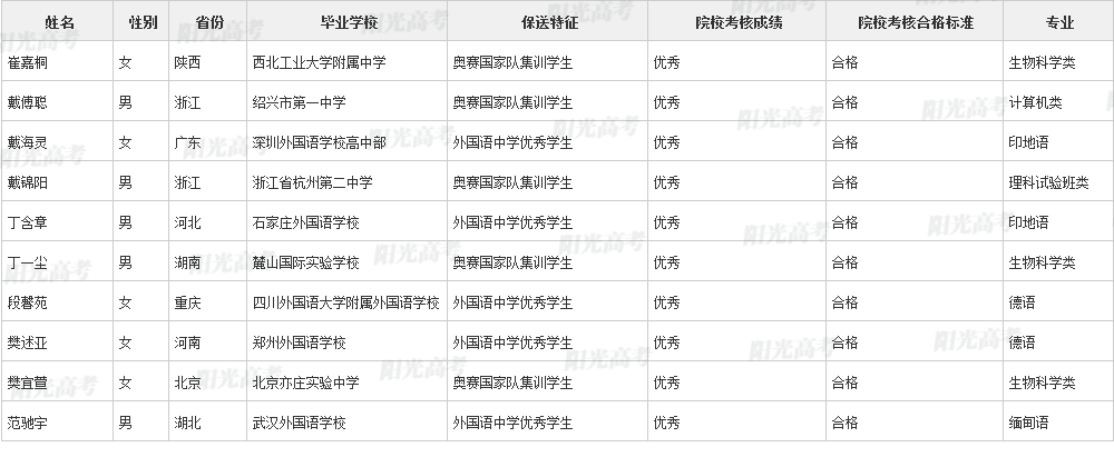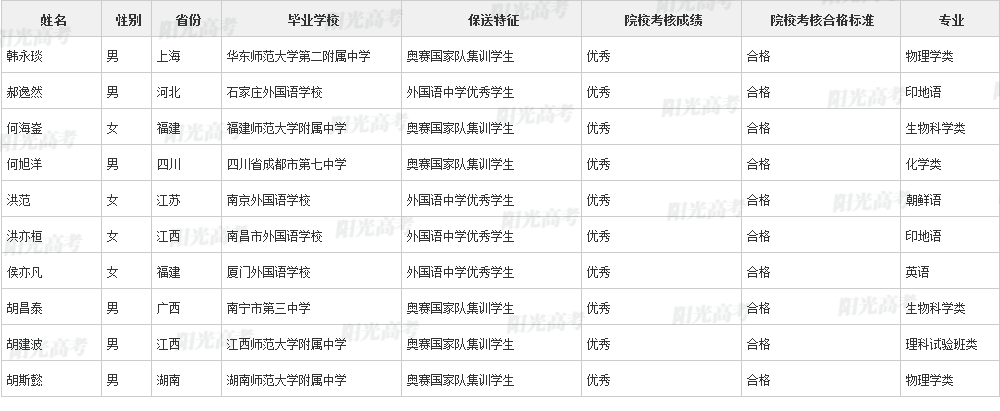 北京大学2021年保送生拟录取名单