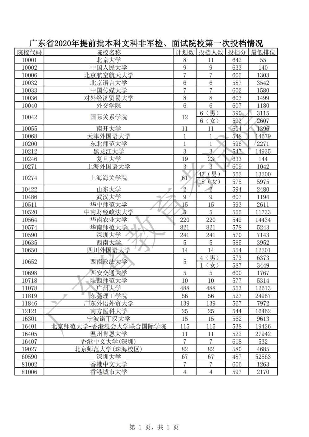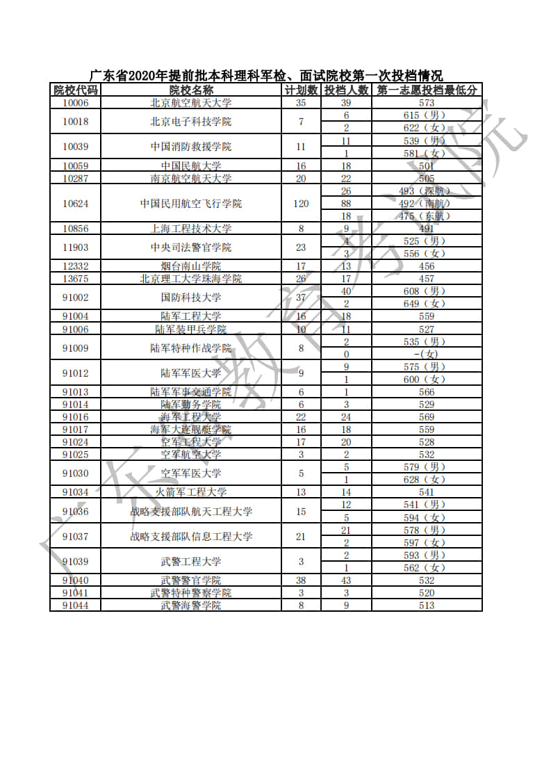 以下是广东省教育考试院公布的广东省提前批学校录取情况,供参考:
