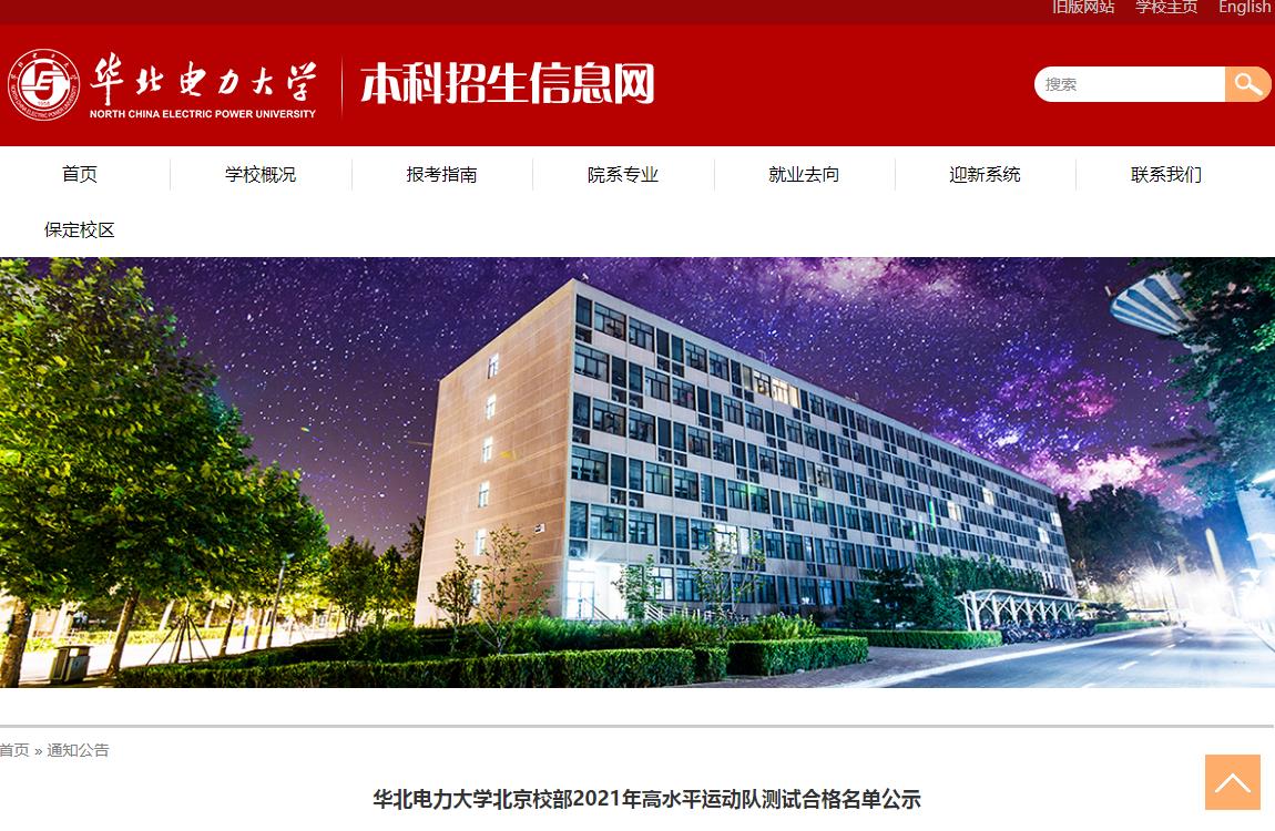 华北电力大学北京校部2021年高水平运动队测试合格名单公示