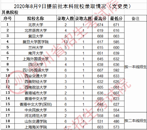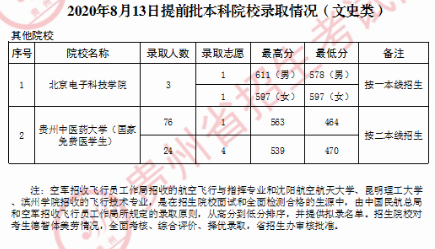 2020贵州高考提前批本科院校录取最低分 时间:2020-08-15 09:51 成绩查询 目前,同学们和广大家长朋友们非常关心的2020贵州高考提前批本科院校录取最低分已经公布。下面小编为大家详细介绍一下,供大家参考。贵州高考提前批本科院校录取最低分理科最低分文科最低分