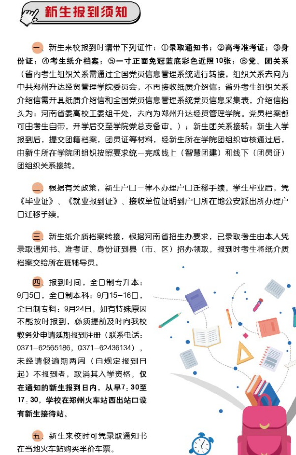 郑州升达经贸管理学院入学须知