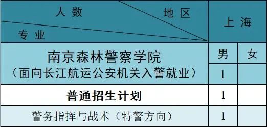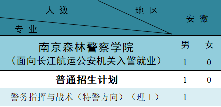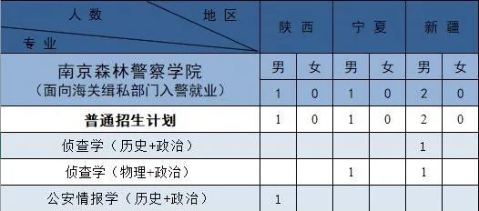 新疆计划中含南疆单列计划 1人,即公安管理学专业文科男生1人;