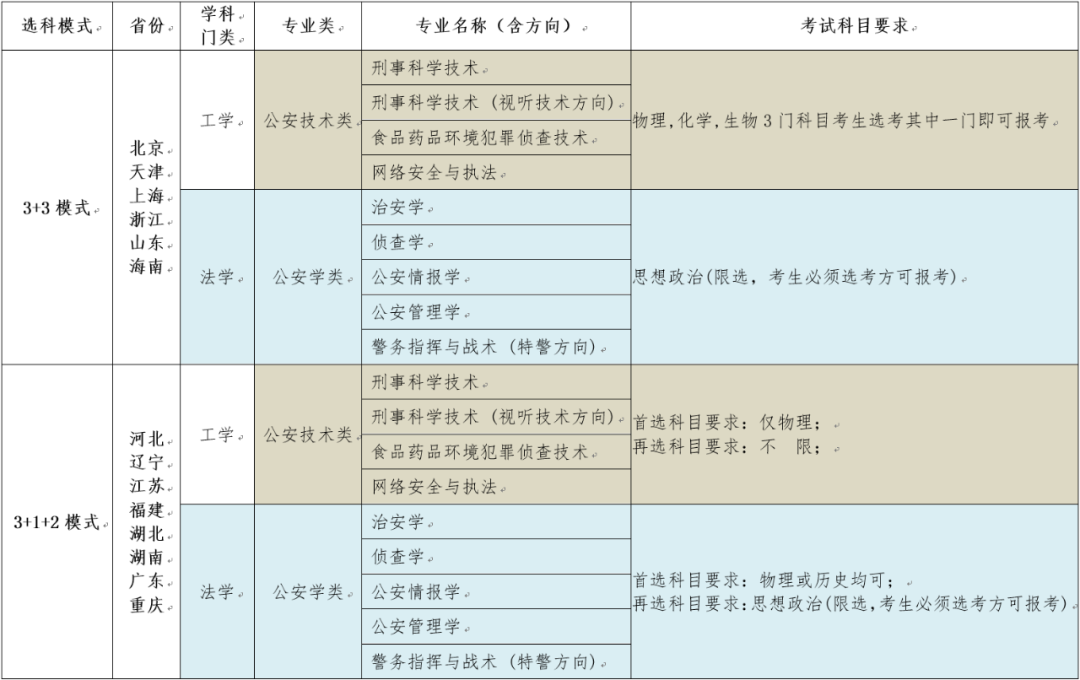 (1)首选科目为 “物理”的考生可以报考公安技术类所有专业,对2门再选科目不另做必选要求。