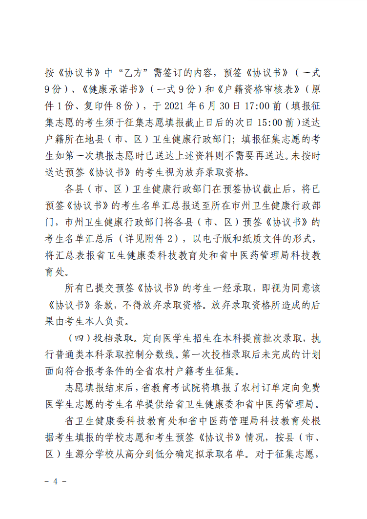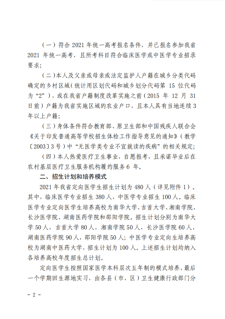 湖南:关于做好湖南省2021年农村订单定向免费本科医学生招生培养工作的通知 时间:2021-06-07 00:01 自主招生 1.2021年定向医学生免费培养定向就业协议书.pdf2.2021年定向医学生户籍资格审核表.docx3.汇总表.docx4.农村订单定向免费培养医学生健康告知书和承诺书.docx