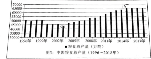 D.从 2015 年起,我国粮食总产量连续四年稳定在 65000 万吨以上水平,这有助于保障国家粮食安全、促进经济社会发展。