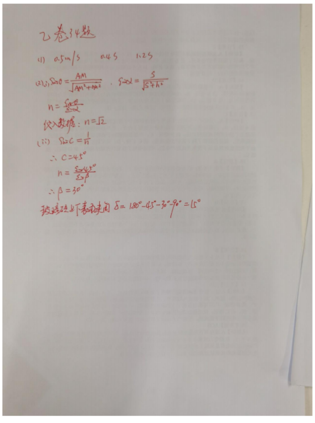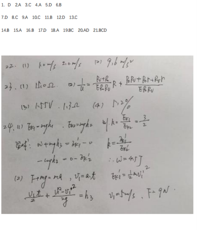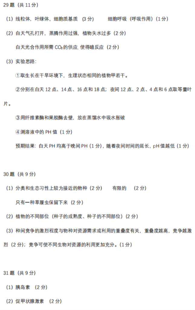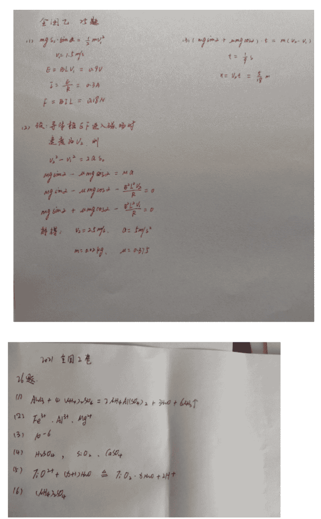 2021年全国乙卷理综真题答案解析