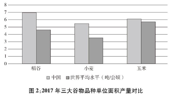 B.2017年我国稻谷、小麦、玉米的每公顷产量明显高于世界平均水平,可见居民的生活质量和营养水平得到了显著提升。