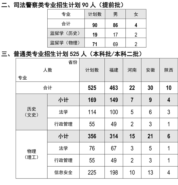 2021福建警察学院招生计划及人数