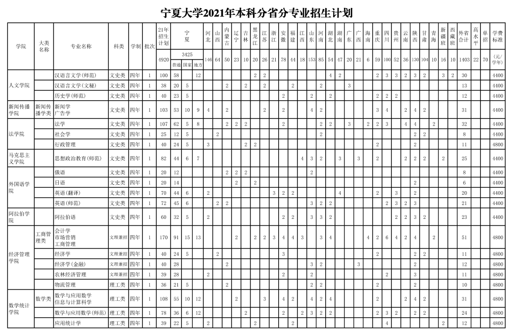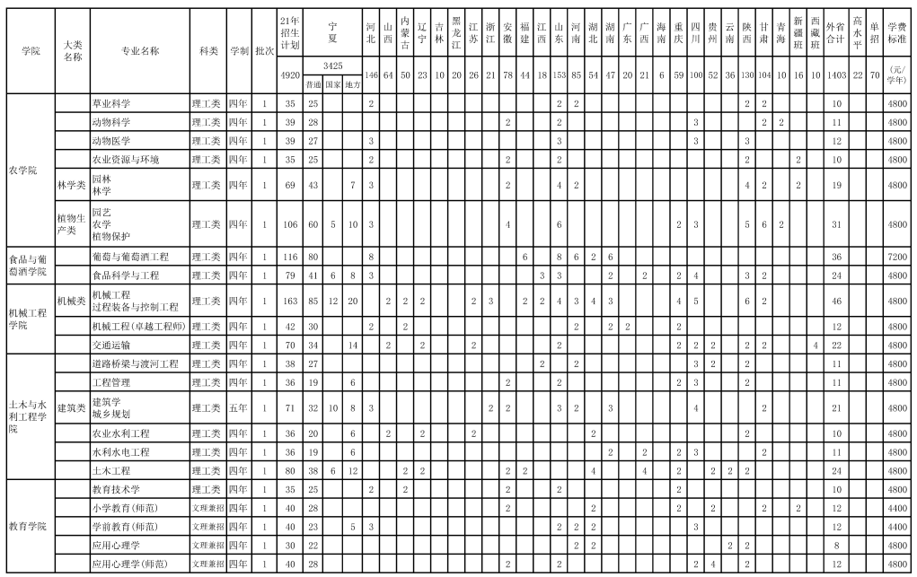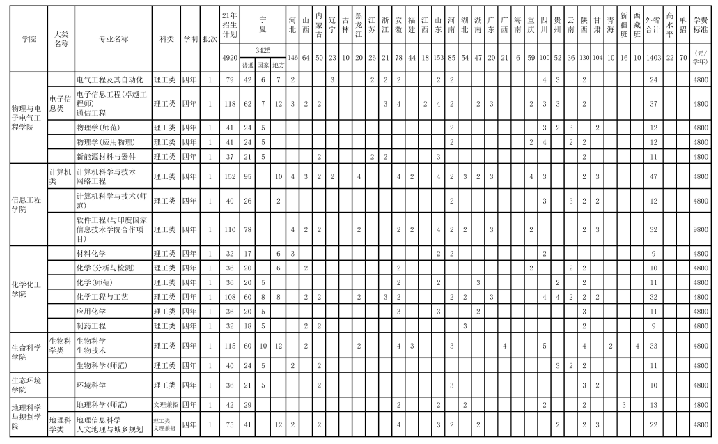 2021年宁夏大学各省招生计划及人数 时间:2021-06-13 19:58 招生计划 同学们和广大家长朋友们非常关注的2021年宁夏大学招生计划及招生人数已经公布,下面小编为大家详细介绍一下,供大家参考。2021年宁夏大学各省招生计划