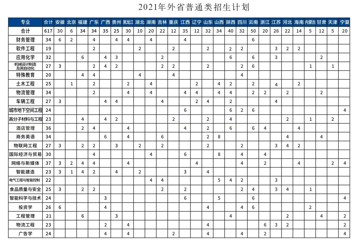2021郑州工程技术学院在各省招生计划及人数