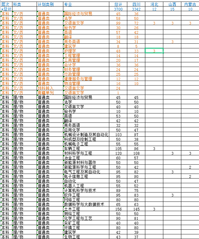 以上为攀枝花学院在部分省市招生计划及人数,其它省市招生计划详见学校官网。