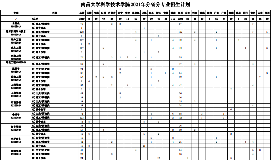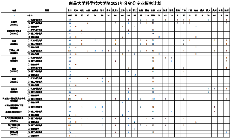 2021南昌大学科学技术学院招生计划 各省招生人数是多少