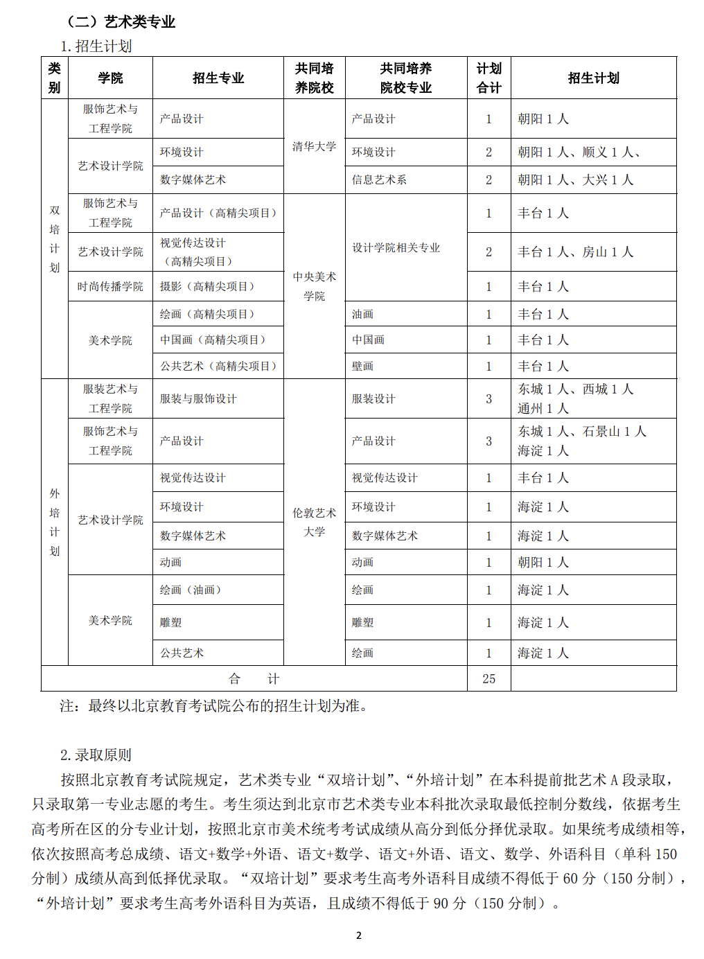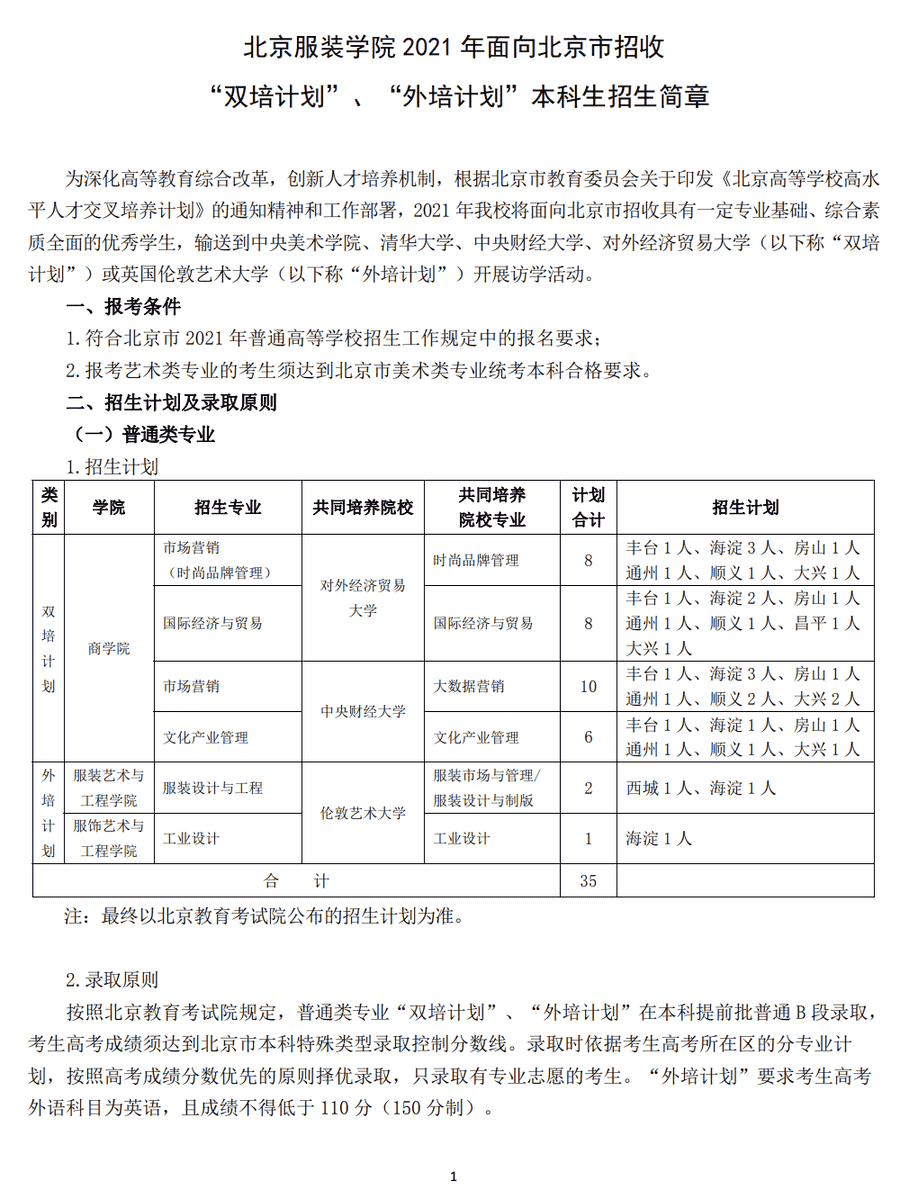 北京服装学院面向北京市招收双培外培计划招生简章发布