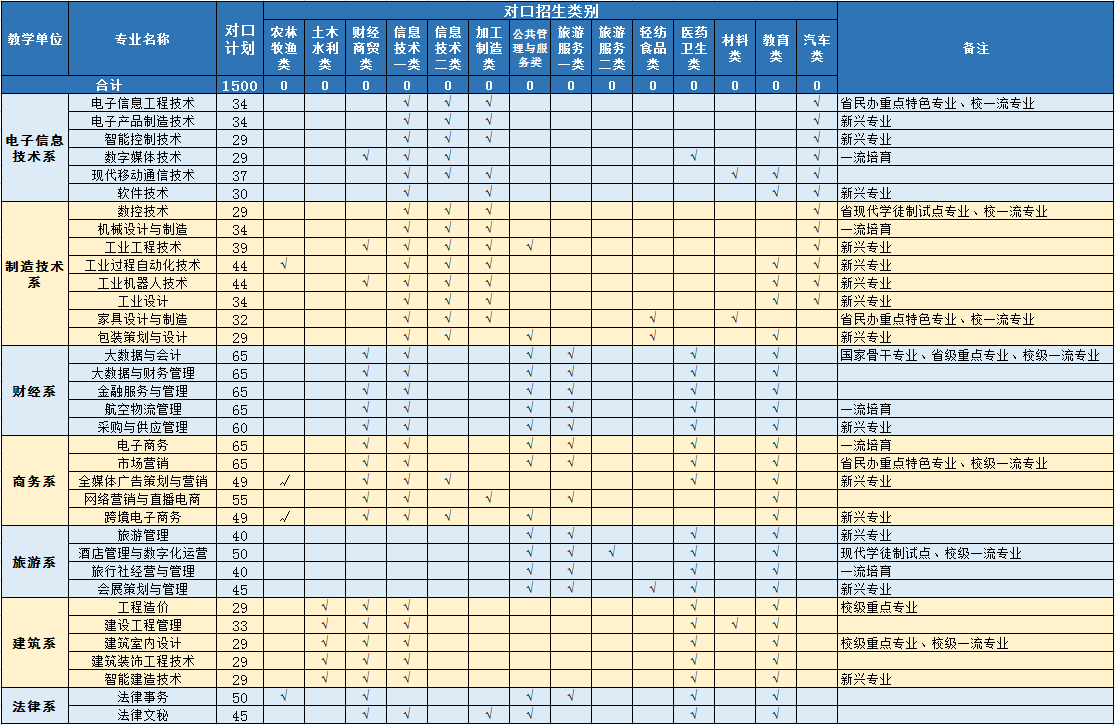 四川现代职业学院2021年对口(中职)招生类别一览表
