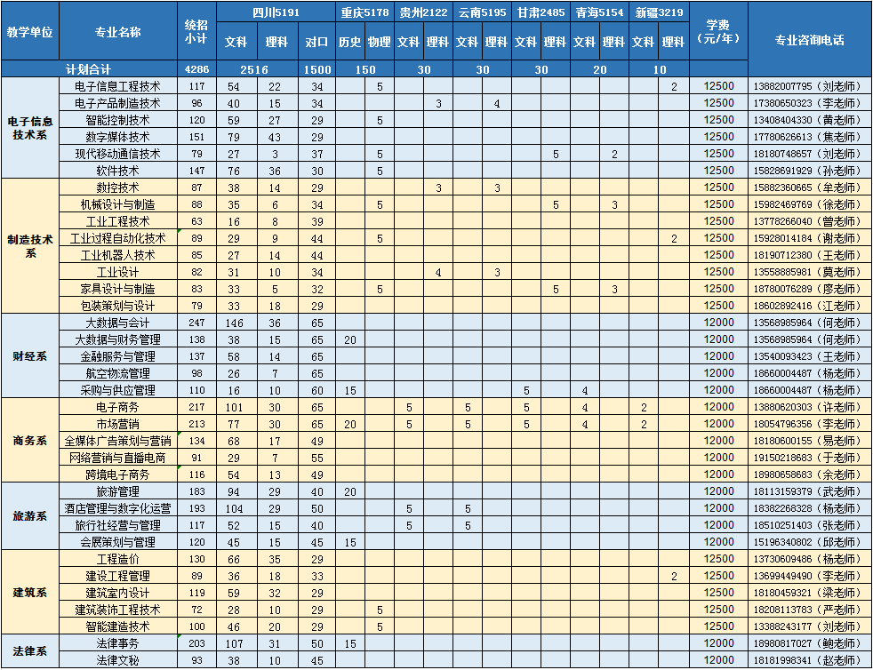 2024四川航天职业技术学院招生计划及各专业招生人数