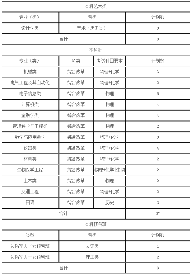 注:以上是部分省市招生计划,其余地区招生计划请到学校官网查看。