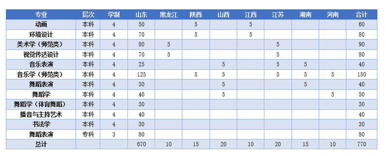 我校在山东省不组织校考,所有招生专业均使用省统考或校级联考成绩,录取时根据教育部、山东省教育厅和山东省教育招生考试院艺术类专业招生有关文件规定择优录取。各专业使用专业考试成绩情况如下: