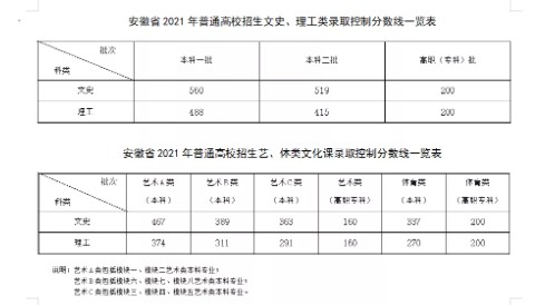 2021安徽高考一本分数线公布:文科560分 理科488分