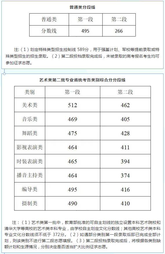 (2)录取流程。第一段考生先填报志愿,随即投档录取;剩余计划重新公布,未被录取的第一段考生和第二段考生填报志愿,再组织投档录取。第二段志愿填报和录取后,如仍有院校专业(类)未完成计划的,实行征求志愿。