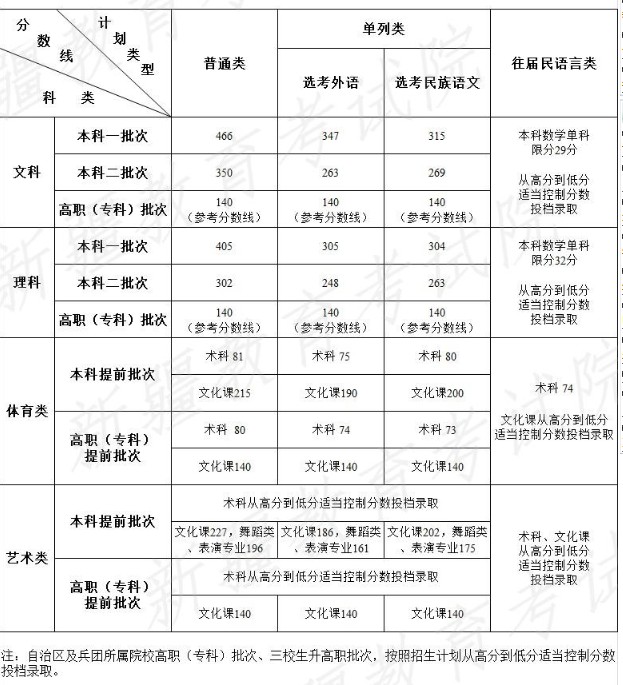 2021新疆各批次录取分数线最新公布