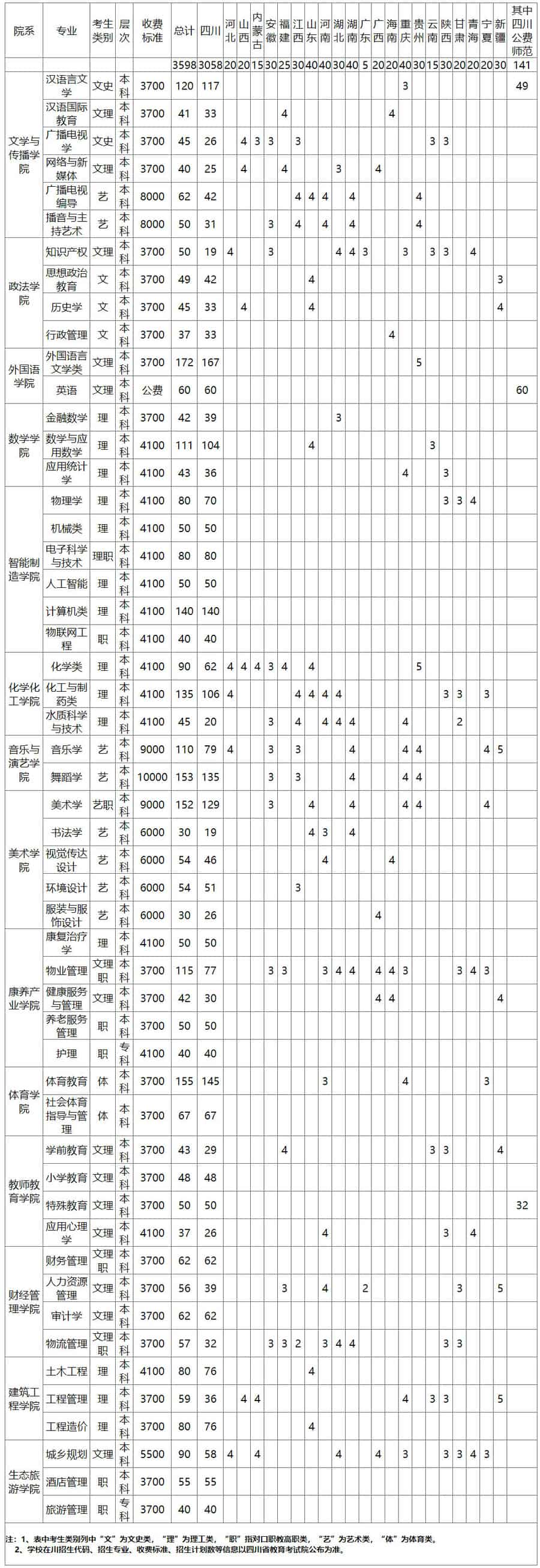 四川文理学院2021年招生计划表 时间:2021-06-28 12:23 招生计划 四川文理学院2021年招生计划表注:四川文理学院2021年分省分专业招生计划汇总表详细情况参见:https://zjc.sasu.edu.cn/info/1041/1808.htm