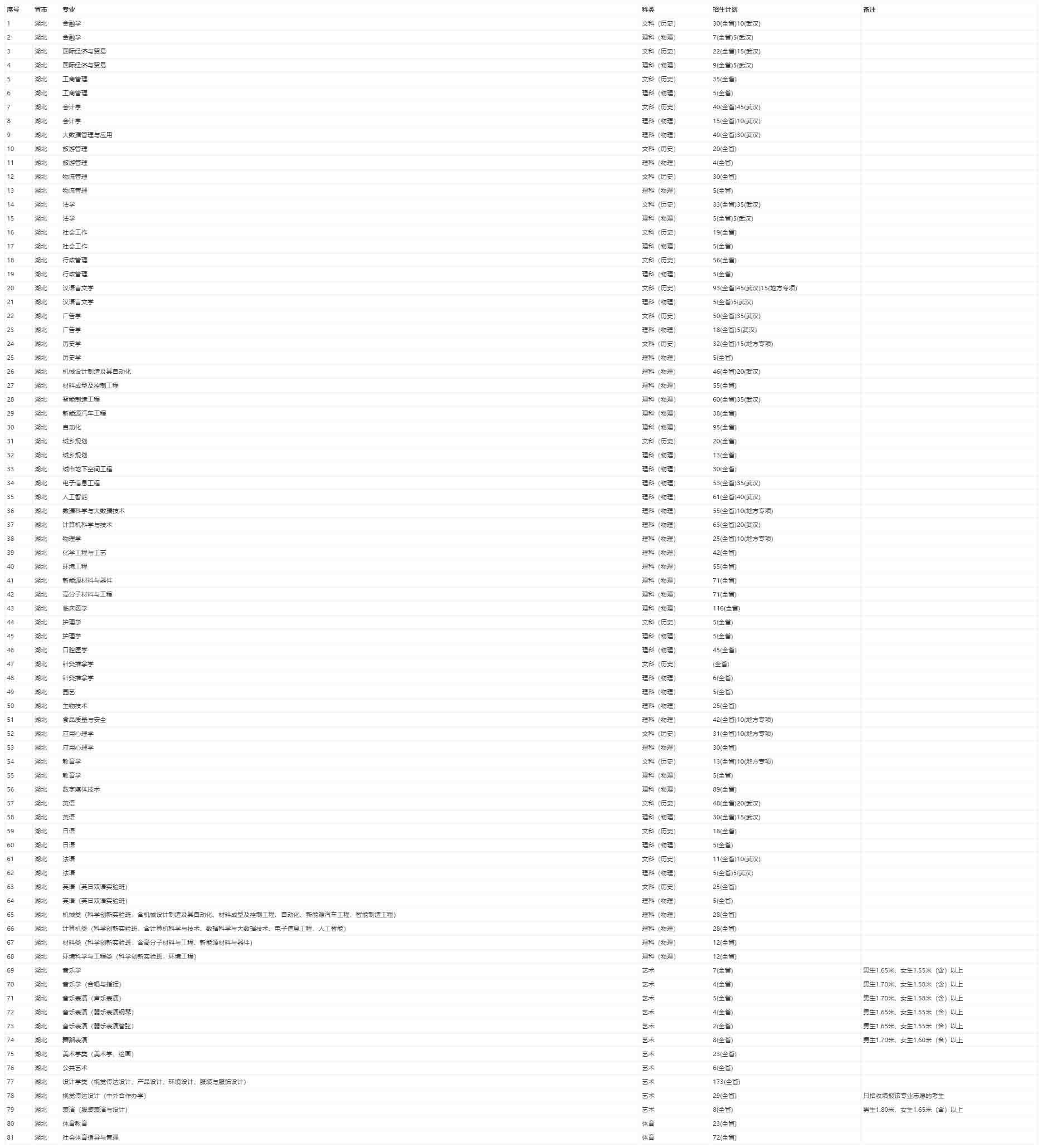 江汉大学2021年招生计划(湖北省)
