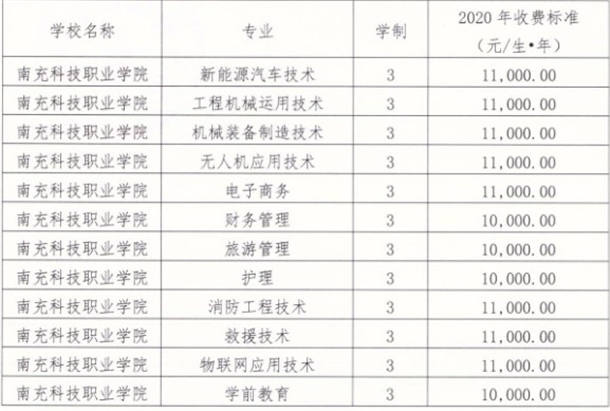 2020南充科技职业学院电子商务、消防工程技术、救援技术、物联网应用技术、无人机应用技术专业的学费为11000/年,财务管理、旅游管理、护理、学前教育专业的学费为10000/年。